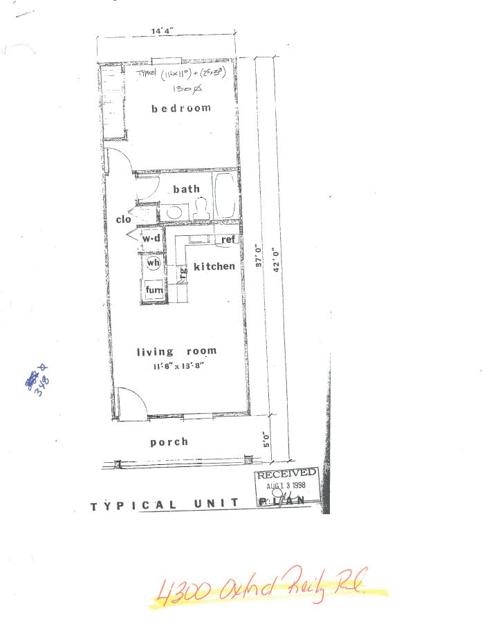 1 bedroom apartment with central air, washer/dryer, exterior storage closet and off street parking