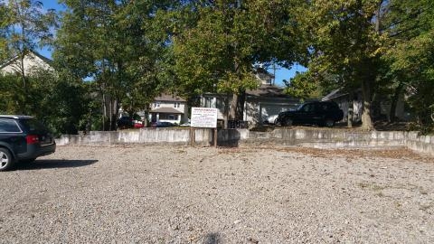 Located across from 2 W. Spring alley. It is a gravel lot with spaces marked on the wall surrounding the lot.